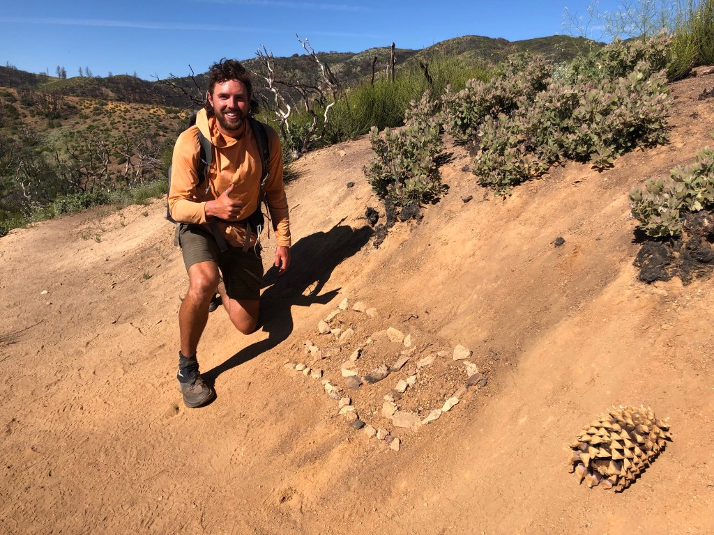 -10 miles with Louisa, great chat. about Love, relationships, enlightenment, breathing, cheat codes, lifting the veil, smitten. Found a Nic Stick! eating skittles off the trail. Coin flip joined us 5 miles in. electric guy