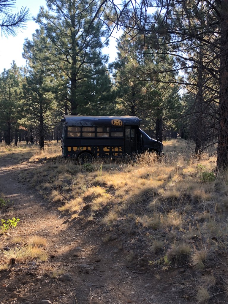 At this level of drunkenness’ I realize I’m not getting back to the trail. But my new friend, Bob, won’t leave me hanging. He has a plan. A buddy who lives in a small school bus out in the woods. In fact, he’s heading back that way soon!